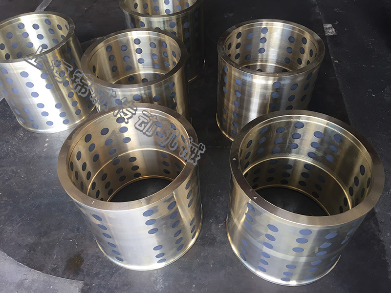 上海錦減傳動(dòng)機(jī)械自潤滑石墨銅套,無油石墨銅套,石墨銅套以高力黃銅(ZCuZn25Al6)或ZQ9-4鋁青銅為基體,通過基體鑲嵌固體潤滑劑(石墨或二硫化鉬)的方式作為潤滑介質(zhì)來替代傳統(tǒng)的錫青銅銅套,可在不易加油,長期缺油或者無油環(huán)境下使用。